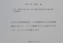 本学建築学専攻博士前期課程の大学院生・塙龍也さん(船木研究室)が、2025年12月9日・10日の2日間、那覇市で開催された日本地震工学会年次大会において、優秀発表賞を受賞しました。 本大会は、地震工学分野における研究成果… Read more »