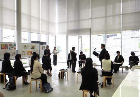 本学主催の第40回東北建築フォーラム、中学生・高校生「未来のエスキースを描く」コンクールの募集には、全国から64作品の都市・建築・インテリアに関する多彩なリサーチやデザインを工夫したプレゼンテーションボードが集まりました。本学建築学部の建築家教員による審査を経て、表彰式を10月11日、八木山キャンパスTech-labで実施しました。受賞者の皆様へ賞状や副賞の授与とともに、審査員をつとめた本学の建築家教員と受賞作品の良さや今後の作品制作に向けたポイントを語る場ともなりました。次年度も、中学生・高校生の皆様に都市や建築、インテリアや家具などに理解を深めて頂く企画を継続します。